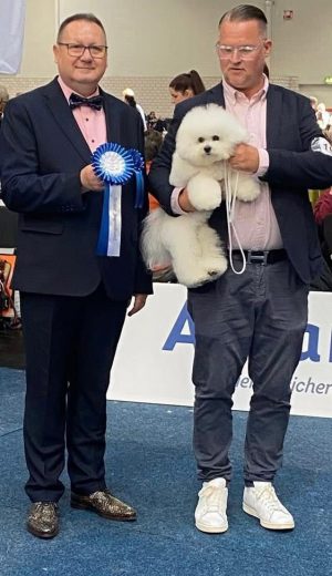 Das Ergebnis: Vorzüglich 1,Junior FCI-CACIB, Anw.Dt.Ch.VDH, CAC Club.